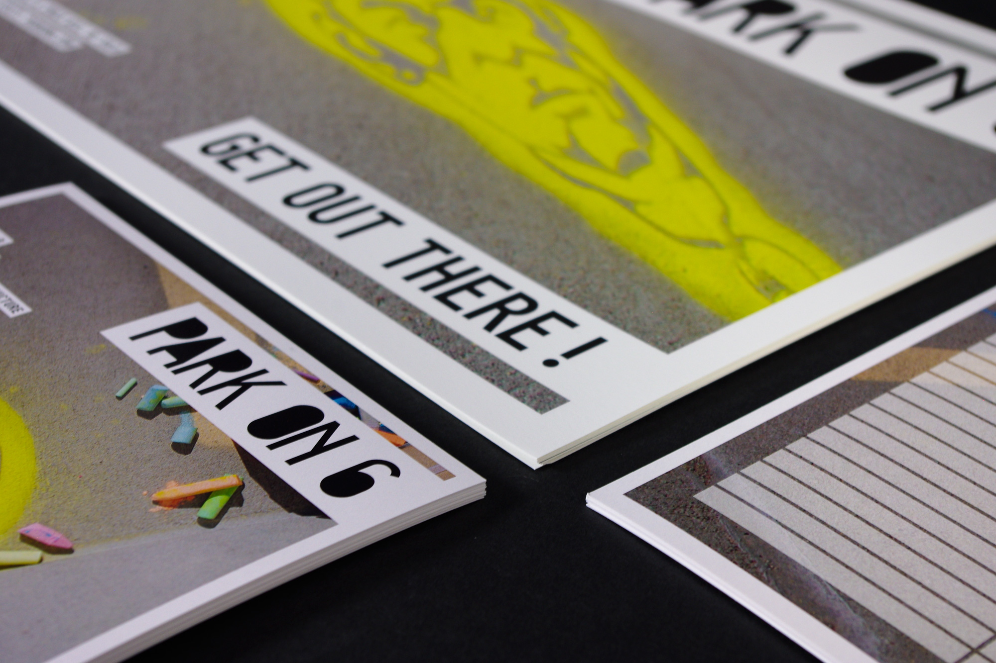 I worked with a partner and we created the complete identity system and hosted the event. The system was based around the use of traditional and aerosol sidewalk chalk using stencils.
